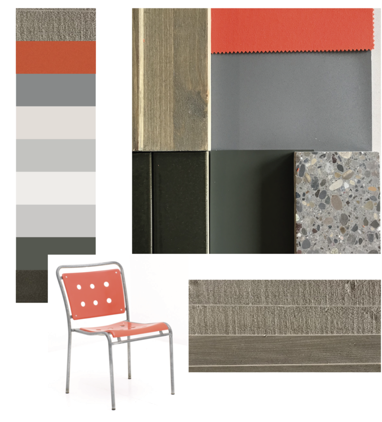 Die neue Fassadengestaltung soll den markanten Waschbeton der Balkonbrüstung betonen und zugleich einen ruhigen, wirkungsvollen Hintergrund für die vielfältige Bepflanzung schaffen. Als Farbton wird ein dunkles Schieferblau vorgeschlagen.
